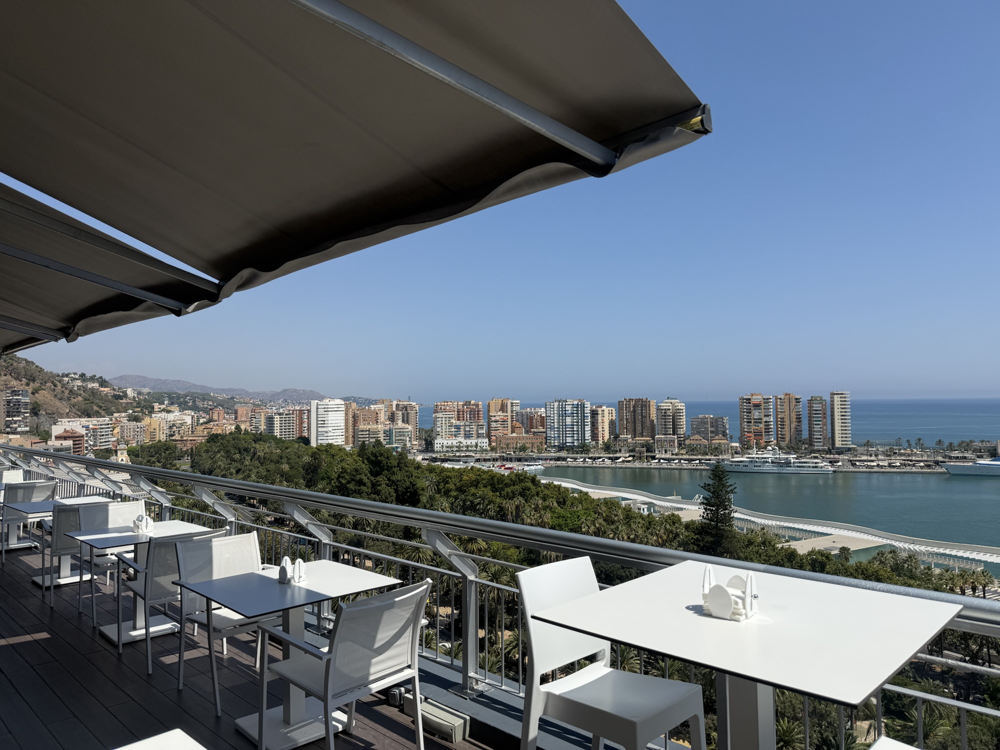 プール自体は大きくありませんが、マラガの港や旧市街を一望できるパノラマビューは圧巻の一言。